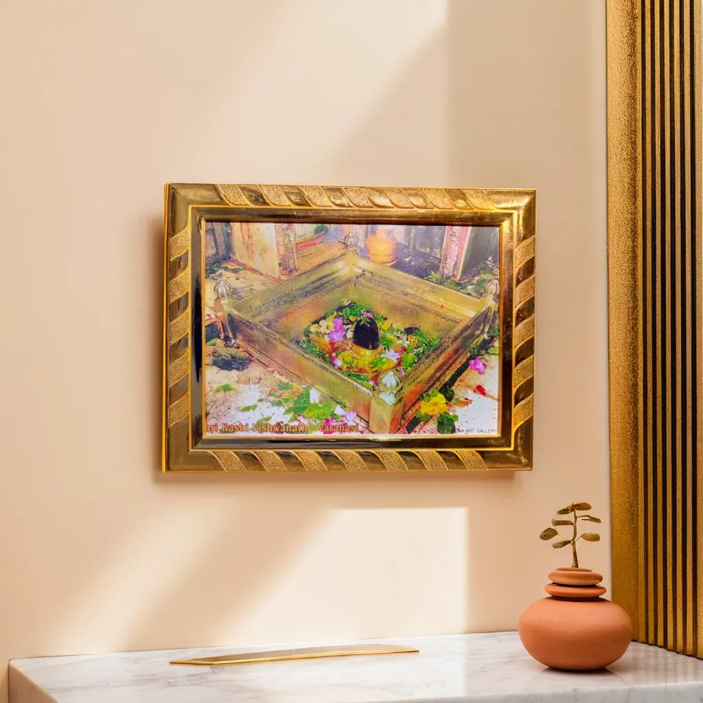- DIVINE DESIGN: Features the sacred Shivling from Kashi Vishwanath Temple, Varanasi, beautifully captured in a laminated acrylic frame with elegant golden border detailing
